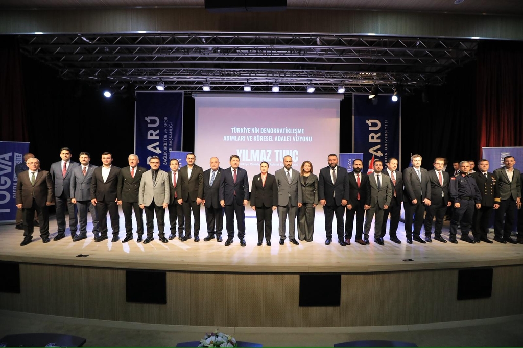 Eski Adalet Bakanı Yılmaz Tunç ise “Türkiye’nin Demokratikleşme Adımları ve Küresel Adalet Vizyonu” konusunda Türkiye’nin hukuk ve demokrasi alanındaki gelişim sürecine değindi. Yılmaz Tunç, “Bartın Üniversitemizin akademik yıl açılış dersinden sonra bu sefer TÜGVA İhtisas Akademi’nin açılış dersinde sizlerle birlikteyiz. İlimizin lokomotifi olan Üniversitemiz, Bartın’ı çok geliştirdi, buraya gelen gençler ilimizi güzelleştirdi. Üniversitemizin kuruluş kanunu teklifini vermekten, kurulmasına katkı sunmaktan duyduğum onuru her zaman taşıyacağım. TÜGVA da gençlerimizin iyi yetişmesine ve öğrencilerimizin akademik çalışmalarına katkı sağlayan, kamu yararına çalışan bir sivil toplum kuruluşudur. Bugünkü açılış dersinin ardından İhtisas Akademi kapsamında önemli isimler gençlerimizle bir araya gelmeye devam edecek.” dedi.